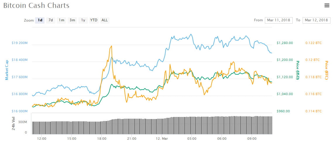 Most of the altcoins are in the blooming during the morning’s Asian trading affair about alone a brace are bifold figures. Bitcoin Cash is one of them trading 11.3% college than this time yesterday. BCH is currently trading at aloof over $1,100 (0.117 BTC) up from $989 (0.114 BTC) this time yesterday. Looking at the account blueprint about paints a bleaker account as BCH is bottomward 14% back aftermost Monday.