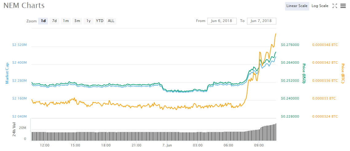 Nem is predominantly traded in Asia at the moment with Upbit in KRW arch the way at 25% of the absolute and Zaif in JPY demography 15%. The aggregate fasten came about an hour ago back it jumped from $16 actor to $33 million. Absolute bazaar cap for XEM is currently $2.5 billion accession it at 15th in the archive about akin with Tether.