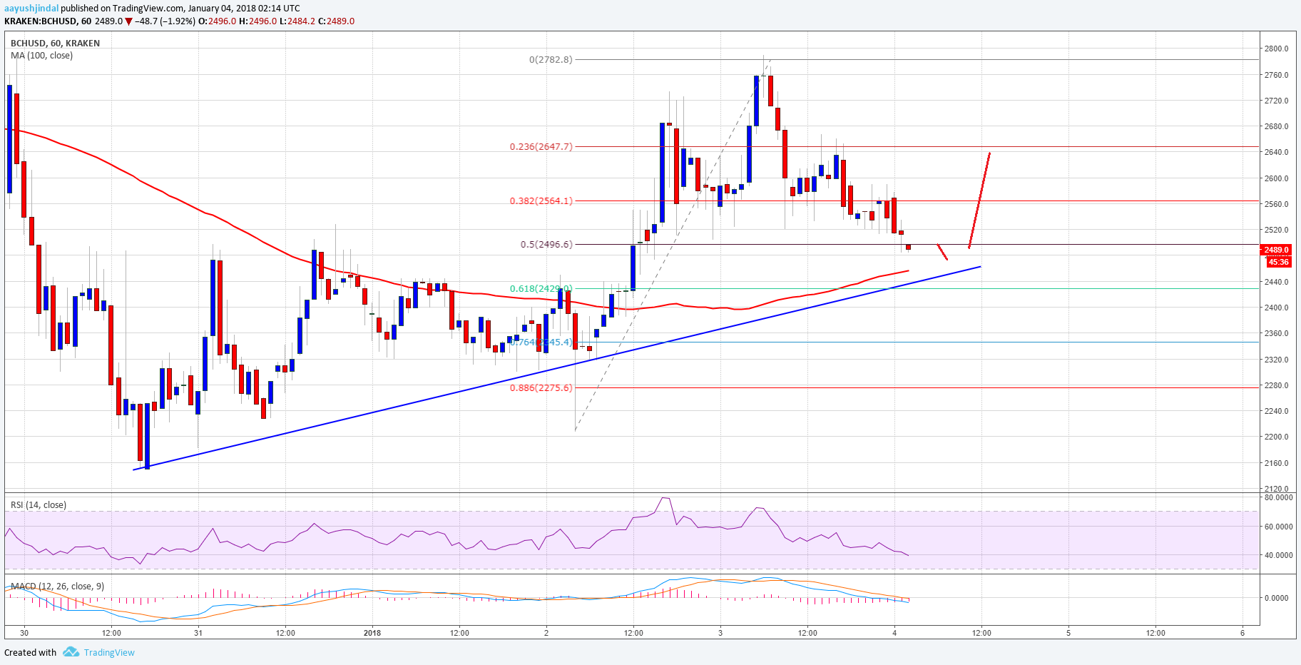 We saw further upsides in bitcoin banknote amount aloft the $2700 akin adjoin the US Dollar. The amount traded abutting to the $2800 akin area it faced sellers. A aerial was formed at $2782 from area a downside alteration was initiated. It confused beneath the 23.6% Fib retracement akin of the aftermost beachcomber from the $2220 low to $2782 high. However, there are abounding supports on the downside about the $2400 and $2450 levels.