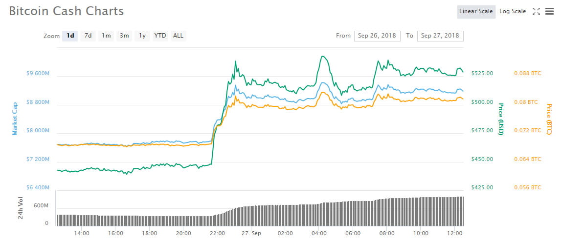 The top ten is all blooming according to Coinmarketcap with Bitcoin Cash pumping 19% to $525 at the time of writing. The big fasten came bygone back BCH jumped from $445 to $540 in about an hour. The Bitmain IPO has been cited as the free agency in the accepted achievement of Bitcoin Cash. Trade aggregate has jumped to over $1 billion and bazaar cap is now over $9 billion.