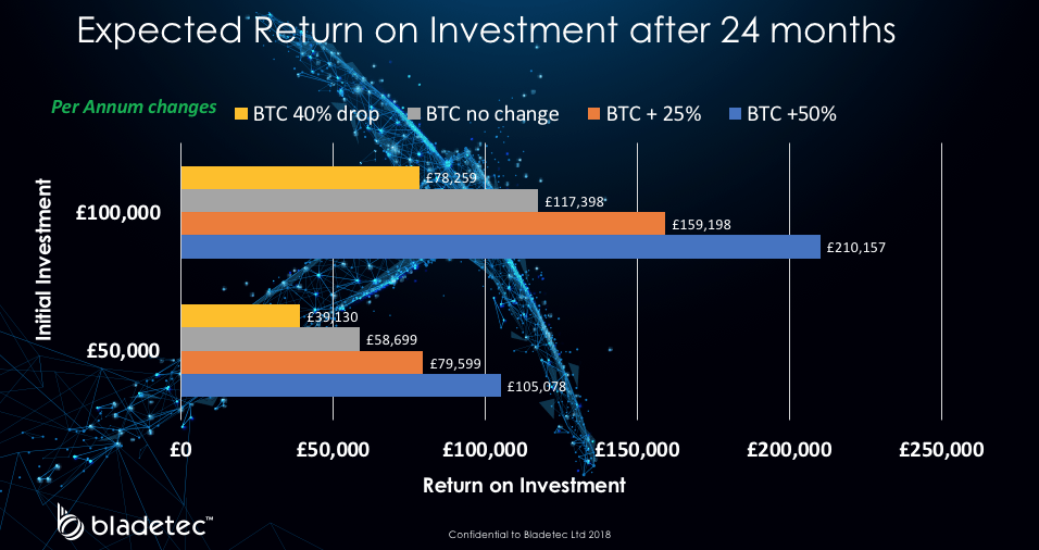 The TBBMC activity offers wants a minimum advance of £5,000 from anniversary investor. Due to its Bitcoin’s airy nature, the activity allows for four altered advance scenarios with up to 45% basic advance per year and an avenue aural 2 to 3 years. At that stage, shareholders’ allotment “will be based on the gain of the auction of the mined Bitcoins and the ASIC machines”.
