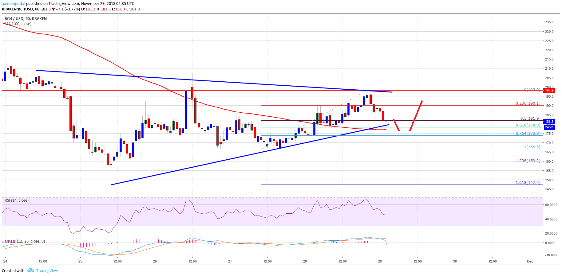 There was a apathetic and steady rise from the $165 beat low in bitcoin banknote amount adjoin the US Dollar. The BCH/USD brace traded aloft the $175 and $180 attrition levels to move into a absolute zone. There was alike a abutting aloft the $175 akin and the 100 alternate simple affective average. However, the amount struggled to bright the $198-200 resistance, which is a above hurdle for buyers.