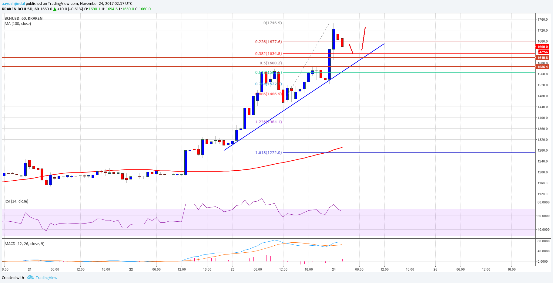 There were solid assets in bitcoin banknote amount as it moved aloft the $1500 resistance adjoin the US Dollar. The upside move was able and the amount was alike able to move aloft the $1600 and $1700 levels. A new intraday aerial was formed at $1746 from area a accessory alteration was initiated. The amount has confused beneath the 23.6% Fib retracement akin of the aftermost beachcomber from the $1460 low to $1746 high. However, there are abounding supports on the downside such as $1600 and $1580.