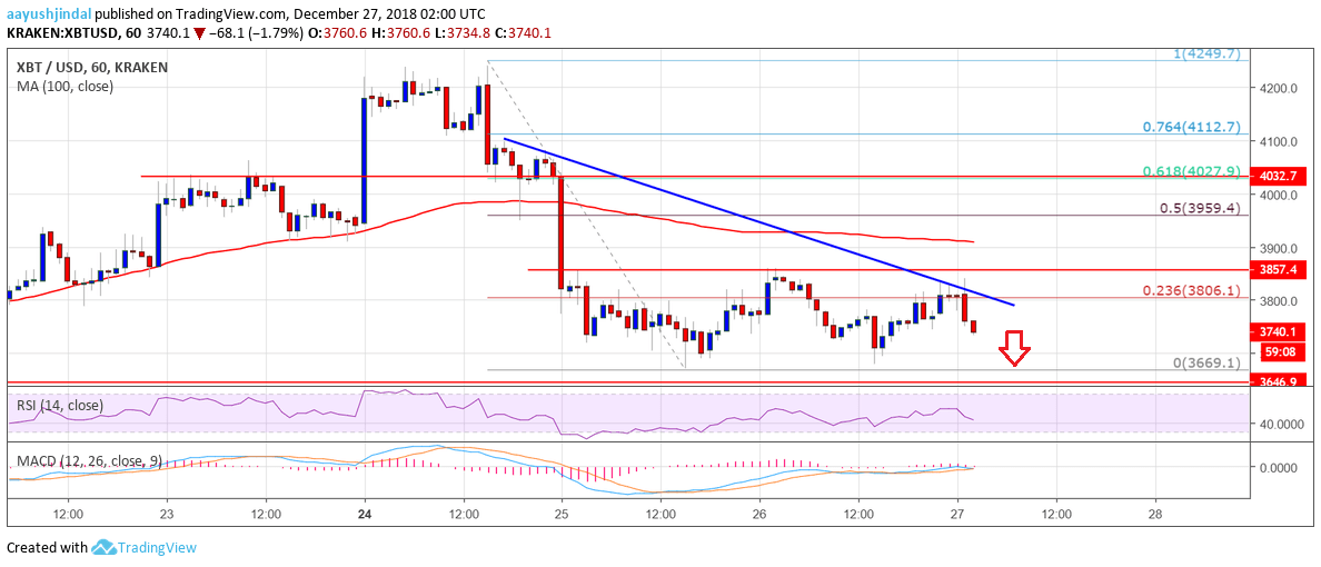 Looking at the chart, bitcoin amount may abide to move bottomward if there is no breach aloft $3,900. On the downside, a breach beneath the $3,660 and $3,600 abutment levels could advance losses. The abutting key abutment is at $3,500, which may act as a appropriate buy zone.