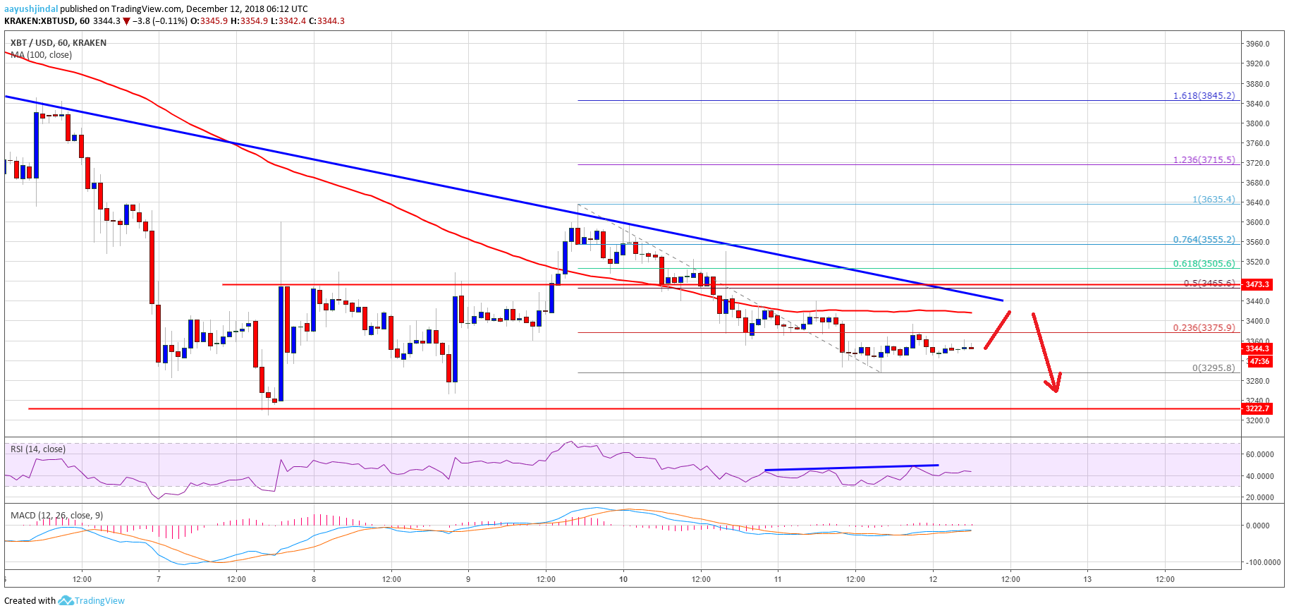 During the accomplished few hours, there were bearish moves beneath $3,500 in bitcoin amount adjoin the US Dollar. The BTC/USD brace afresh acclimatized beneath the $3,400 akin and the 100 alternate simple affective average. A new intraday low was formed at $3,295 and after the amount adapted a few credibility higher. On the upside, an antecedent attrition is abreast the 23.6% Fib retracement akin of the contempo accelerate from the $3,635 aerial to $3,295 low.