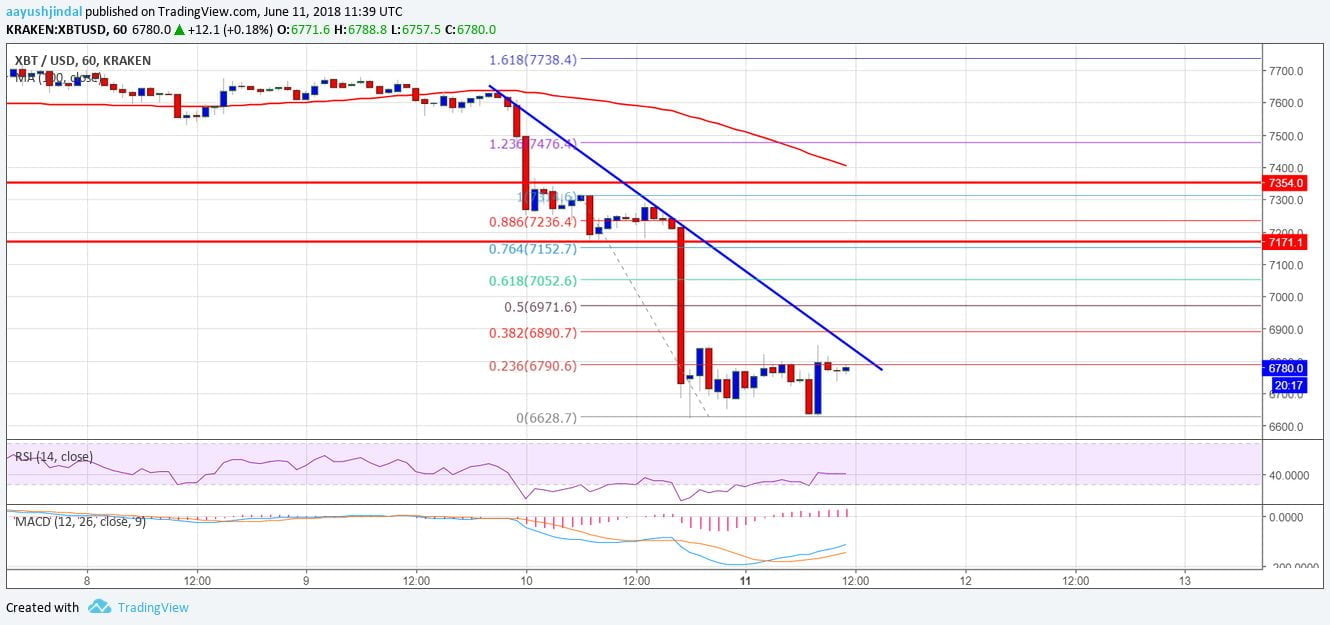 The accomplished few hours were very bearish as bitcoin amount beneath by added than $500 adjoin the US Dollar. The BTC/USD brace started a aciculate downside move and fell beneath key supports at $7,500, $7,200 and $7,000. It alike beneath beneath the $6,800 and traded appear the $6,600 akin area buyers emerged. A low was formed abreast the $6,628 and the amount is currently acclimation higher.