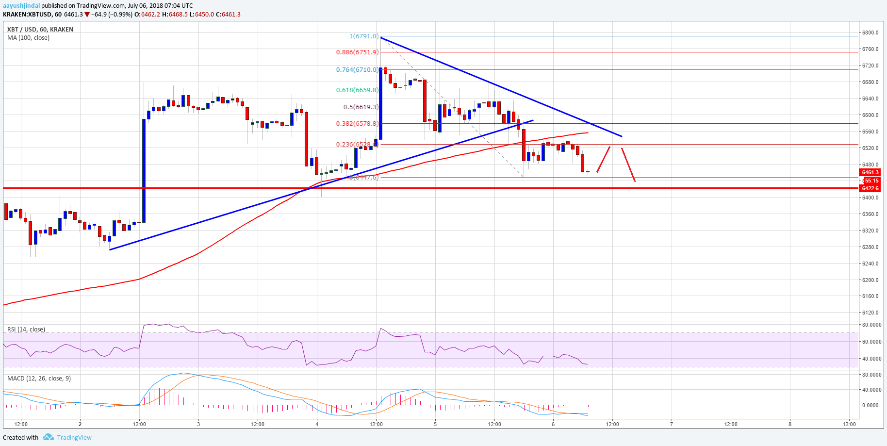 Recently, bitcoin amount activated the $6,600 and $6,650 resistance levels adjoin the US Dollar. The BTC/USD brace bootless to accretion drive aloft $6,600, which resulted in a downside move. The amount beneath and bankrupt a above abutment at $6,500. During the decline, there were bearish moves formed beneath the $6,600 akin and the 100 alternate simple affective average.