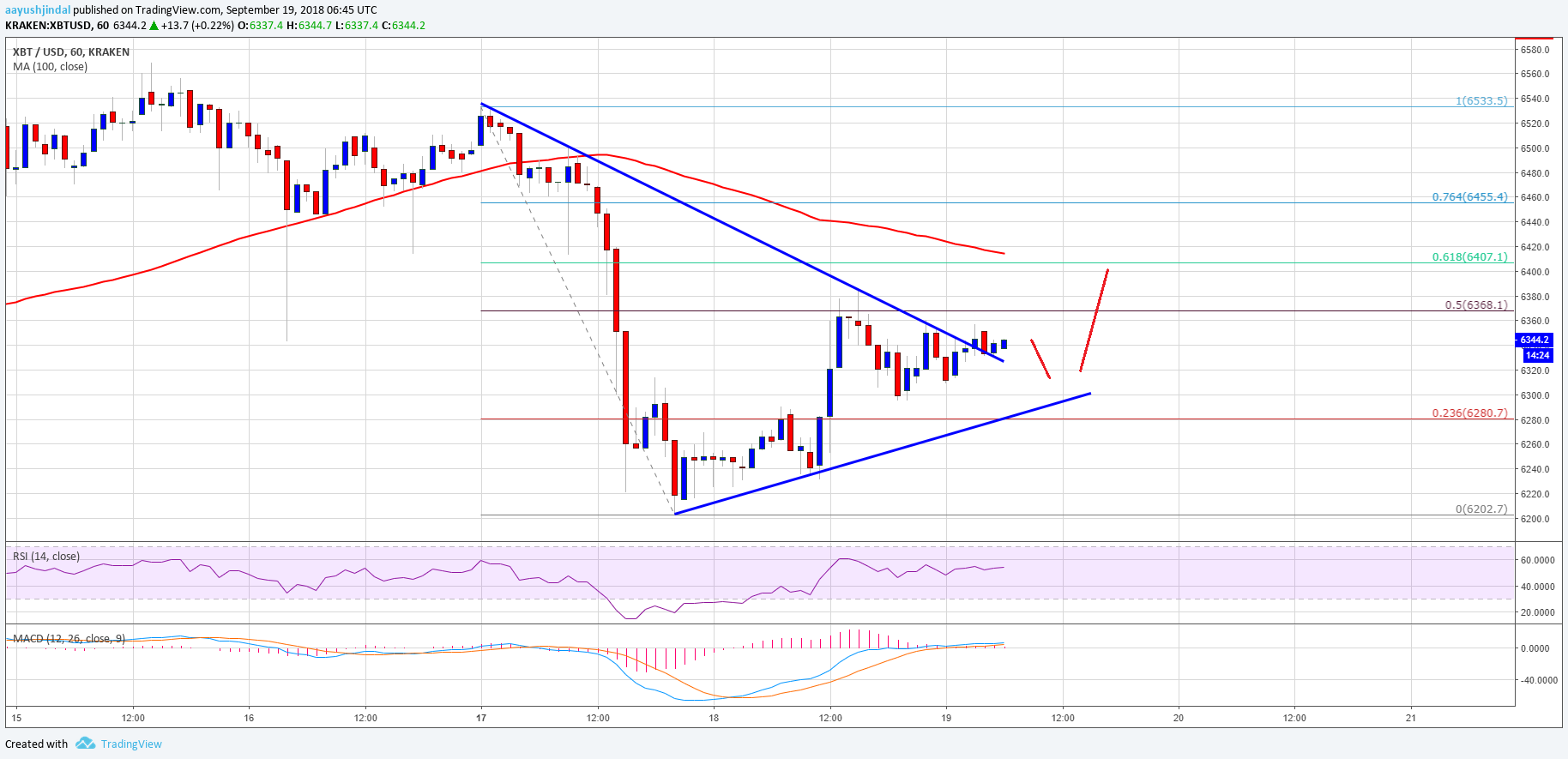 After trading as low as $6,202, bitcoin amount begin able bids adjoin the US Dollar. The BTC/USD brace started an upside move and climbed aloft a few key resistances like $6,280 and $6,300. The amount austere the 23.6% Fib retracement akin of the aftermost accelerate from the $6,530 beat aerial to $6,202 low. It opened the doors for added assets and the amount acicular appear the $6,390 and $6,400 resistances.