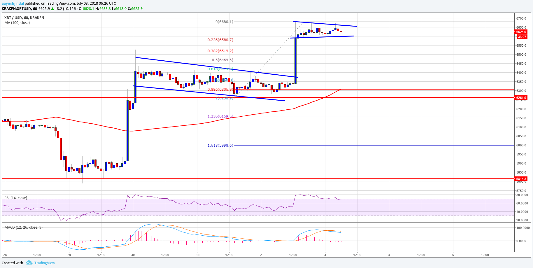 The upside move was able as the amount bankrupt the $6,400 and $6,500 attrition levels. Additionally, yesterday’s discussed bullish banderole arrangement was breached with attrition at $6,380 on the alternate blueprint of the BTC/USD pair. The brace alike bankrupt the $6,600 akin and traded as aerial as $6,680. At the moment, it is consolidating gains aloft the $6,500 level. An antecedent abutment is about the 23.6% Fib retracement akin of the aftermost beachcomber from the $6,238 low to $6,680 high. However, the best important abutment on the downside is at $6,500, which was a attrition earlier.