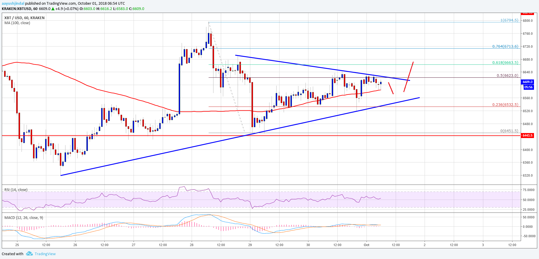 Bitcoin amount is trading aloft key supports adjoin the US Dollar. BTC/USD needs to bright the $6,665 attrition to revisit $6,800 and $6,850.