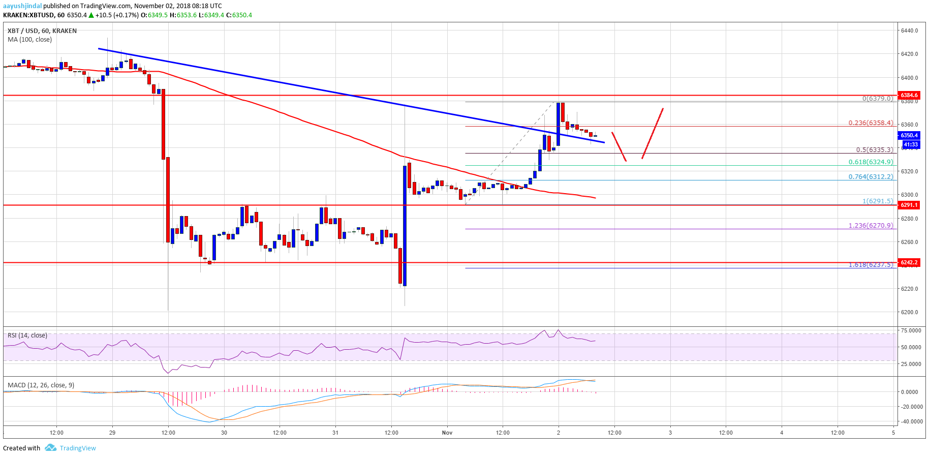 Yesterday, we saw a decent upside move from the $6,220 beat low in bitcoin amount adjoin the US Dollar. The BTC/USD brace confused college and traded aloft the $6,300 and $6,325 resistances. Later, there was a accessory downside alteration and the amount activated the $6,290 support, which was a attrition earlier. The amount bounced aback afresh and traded aloft $6,335 and the 100 alternate simple affective average.
