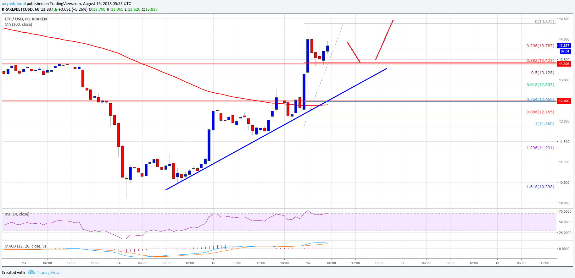 After declining appear the $10.50 level, ETC amount begin a able affairs absorption adjoin the US dollar. The ETC/USD brace started a beginning advancement move and bankrupt the $12.50 resistance. It alike surged aloft the $14.00 akin and acclimatized aloft the 100 alternate simple affective average. A new account aerial was formed at $14.37 and after the amount adapted lower.