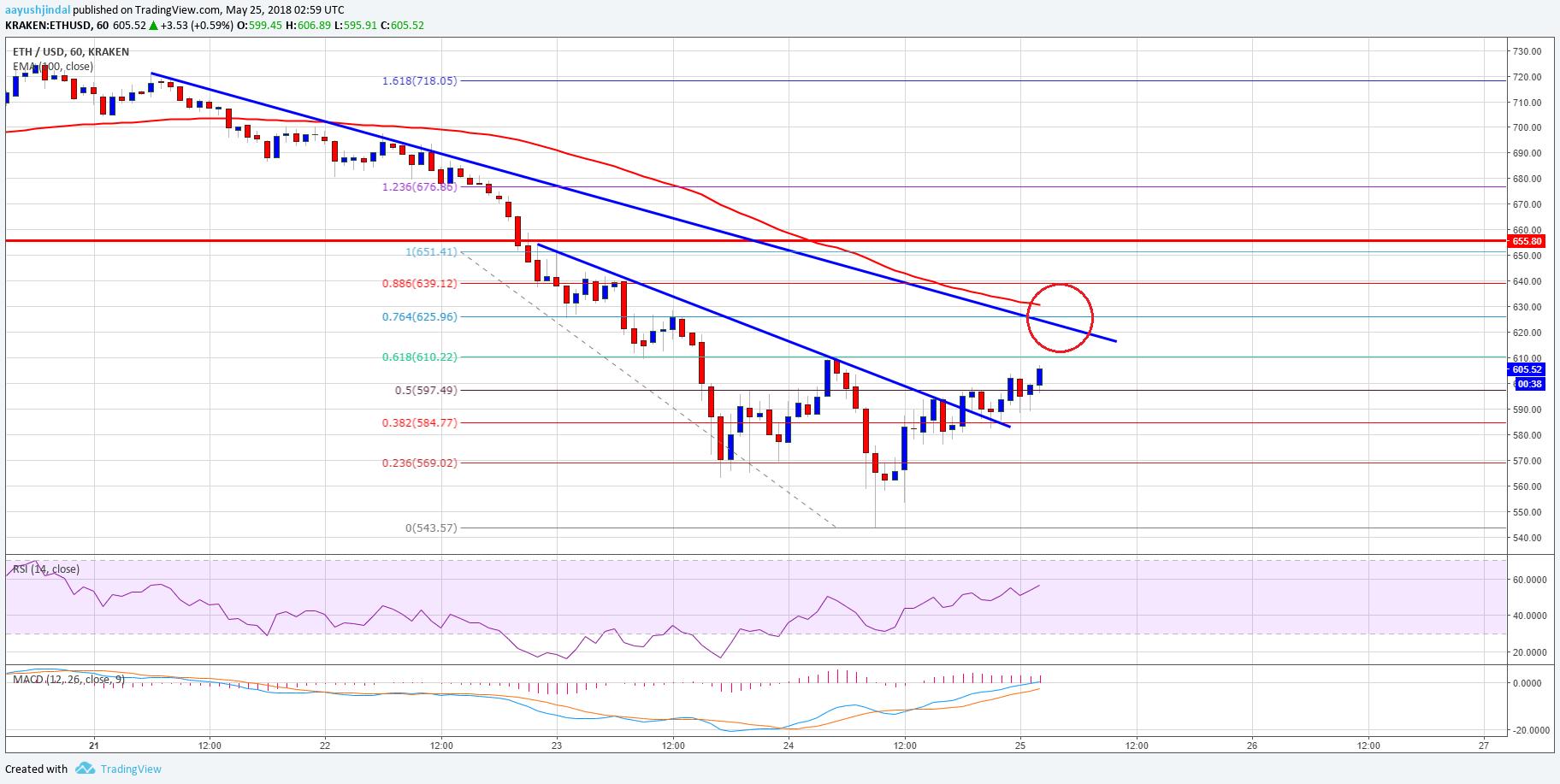 There were added declines beneath $580 in ETH amount adjoin the US Dollar. The amount traded appear the $540 akin area buyers appeared. A low was formed at $543.57 afore an upside alteration beachcomber was initiated. Buyers pushed the amount aloft the $560 and $580 attrition levels. Moreover, there was a breach aloft the 38.2% Fib retracement akin of the aftermost abatement from the $651 aerial to $543 low.