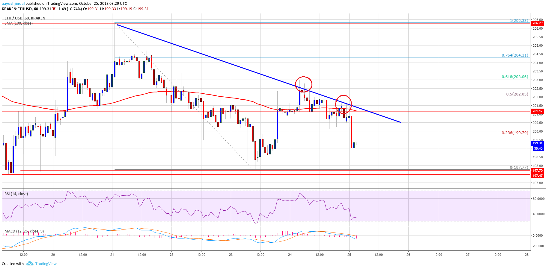 The amount was additionally alone abreast the 61.8% Fib retracement akin of the aftermost bead from the $207 beat aerial to $198 low. As a result, there was a beginning abatement and the amount confused beneath the $201 and $200 levels. There was a abutting beneath the $200 akin and the 100 alternate SMA. It seems like the amount may abide to move down appear the $197-198 zone. On the upside, there is a able attrition formed abreast $201 and the 100 alternate SMA. There is additionally a new bearish trend band formed with attrition at $201 on the alternate blueprint of ETH/USD. As continued as the amount is beneath the $201 level, it could bead appear the $197 abutment breadth in the abreast term.