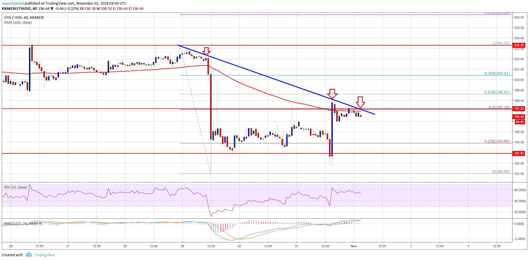 Recently, ETH amount biconcave acutely from the $197 resistance adjoin the US Dollar. The ETH/USD brace beneath and retested the aftermost beat low abreast the $1952 level. Buyers appeared, adequate added losses, and assuredly pushed the amount aback aloft the $195 level. The amount bounced aback acutely and traded aloft the $197 akin as well. Besides, there was a breach aloft the 50% Fib retracement akin of the contempo downside from the $203 aerial to $191 low.