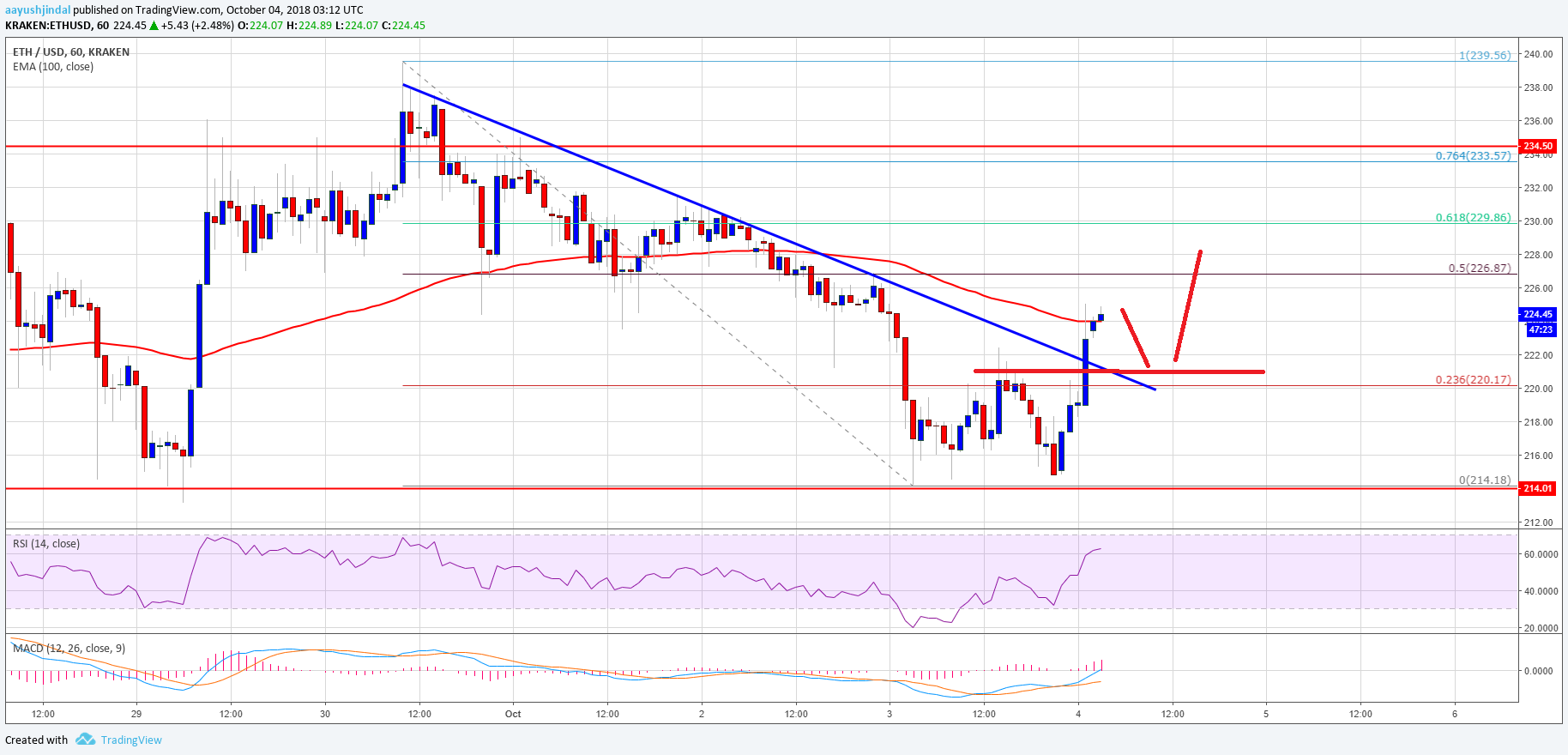 Yesterday, we saw a major downside move beneath $220 in ETH amount adjoin the US Dollar. The ETH/USD brace alike bankrupt the $218 akin and traded appear the $213-214 abutment zone. A low was formed abreast $214 and after the amount started an advancement move. There was a breach aloft the $218 attrition and the 23.6% Fib retracement akin of the contempo abatement from the $239 aerial to $214 low.