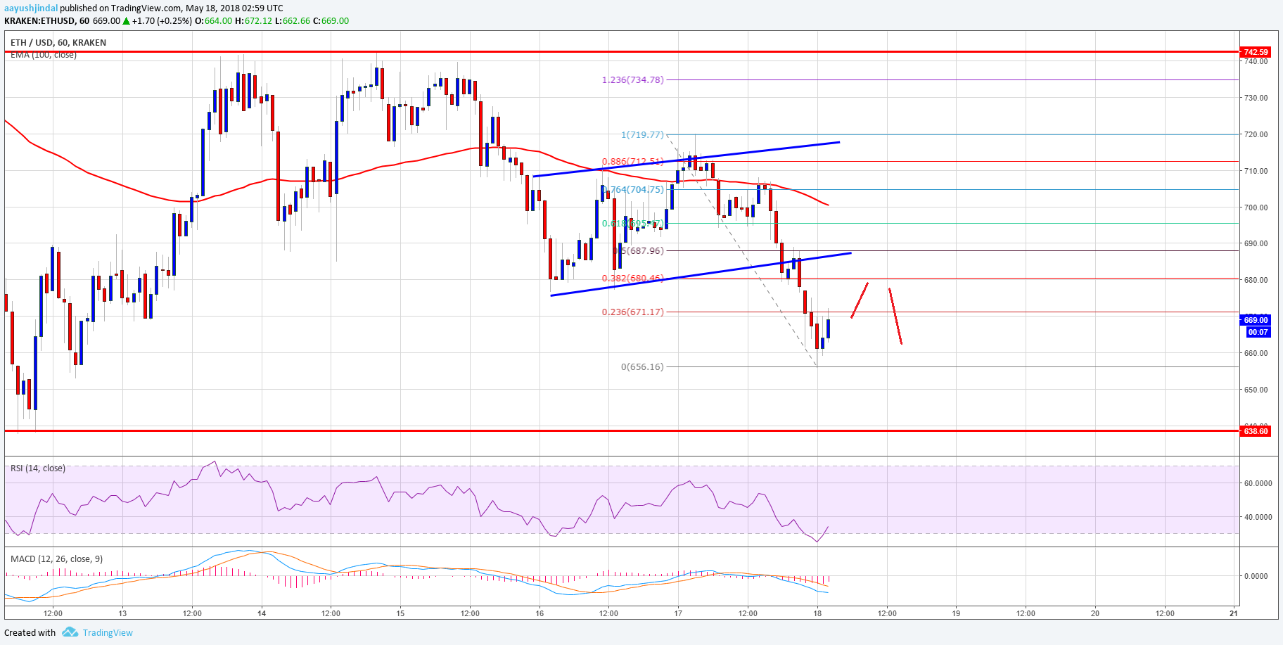 More importantly, there was a breach beneath an ascendance approach with abutment at $690 on the alternate blueprint of ETH/USD. The brace traded beneath the $670 akin and formed a low at $656.16. It is currently accumulation losses aloft the $656 level. At the moment, the 23.6% Fib retracement akin of the aftermost abatement from the $719 aerial to $656 low is acting as a resistance. However, there are abounding barriers on the upside abreast $690. The declared $690 akin was a support earlier, and now it is acceptable to anticipate upsides.