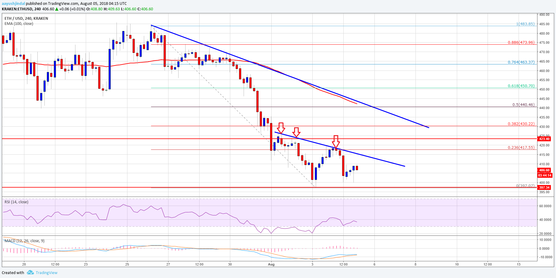 This accomplished week, there were mostly bearish moves beneath $440 in ETH amount adjoin the US Dollar. The ETH/USD brace beneath and bankrupt the $430 and $423 abutment levels. It confused into a bearish area beneath $430 and acclimatized beneath the 100 simple affective boilerplate (4-hours). The abatement was such that the amount alike bankrupt the $400 akin and formed a new low at $397.