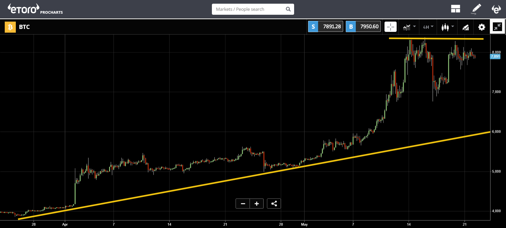 As declared before, a able blemish to the upside would be crazily bullish. But even aural our ascent triangle, there’s acutely allowance for an continued pullback to analysis the historically cogent akin of $6,400. Let’s see how it plays out.